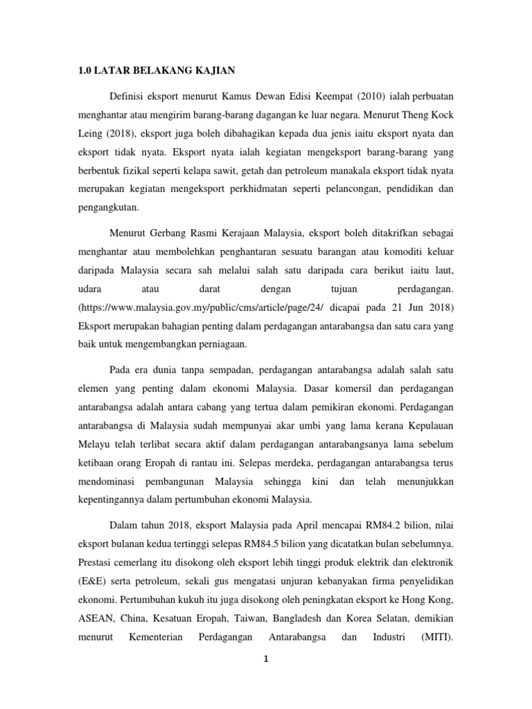 Kerja Kursus 2 Docx 1 0 Latar Belakang Kajian Eksport Boleh Ditakrifkan Sebagai Menghantar Atau Membolehkan Penghantaran Sesuatu Barangan Atau Course Hero